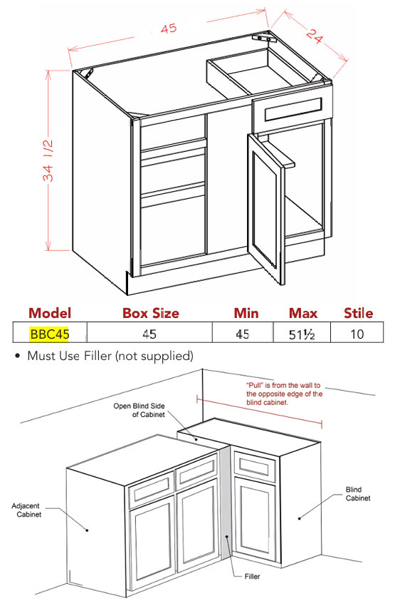 USCD Haven Ember BBC45: Blind Base Cabinet: RTA Kitchen Cabinets