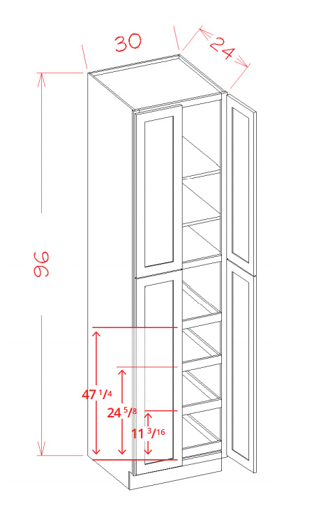 USCD Haven Ember U3096244RS: Utility Cabinet - Four Doors: RTA Kitchen Cabinets