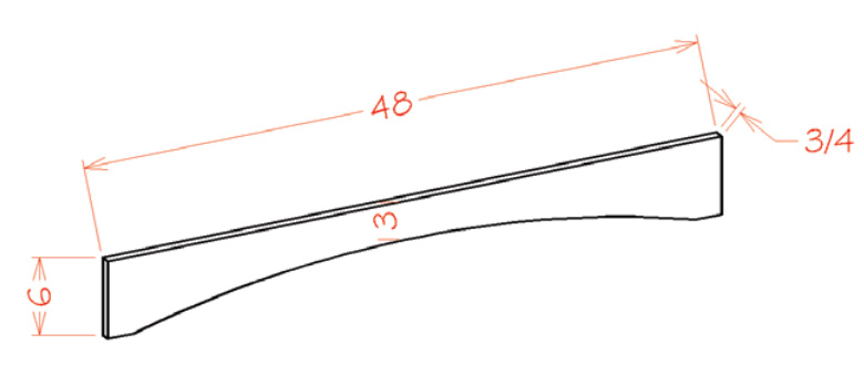 • 48"W x 3/4"D x 6"H