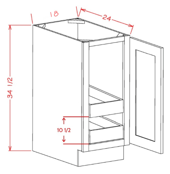 B18FH2RS: Single Full Height Door, Two Rollout Shelf Base Cabinet
