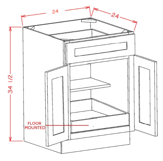 USCD Shaker Ivy B241RS: Double Door, Single Drawer, One Rollout Shelf Base Cabinet: RTA Kitchen Cabinets