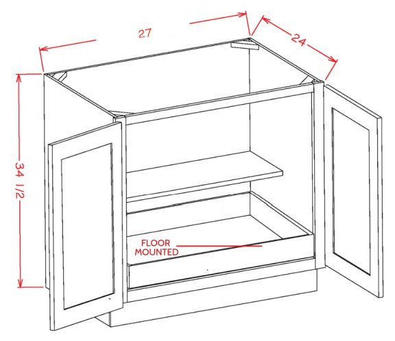 B27FH1RS: Double Full Height Door, One Rollout Shelf Base Cabinet