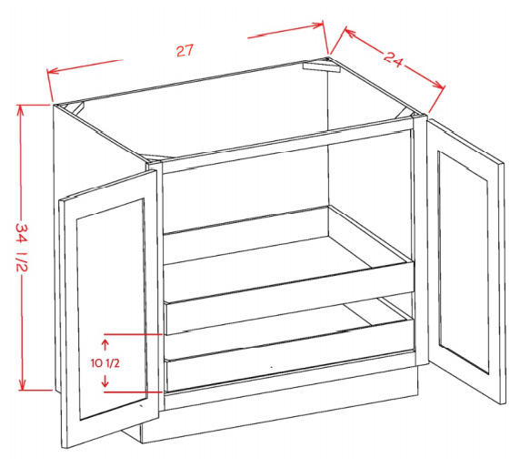 B27FH2RS: Double Full Height Door, Two Rollout Shelf Base Cabinet