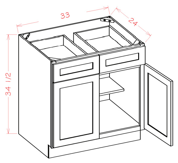 USCD Shaker Ivy B33: Double Door, Double Drawer Base Cabinet: RTA Kitchen Cabinets