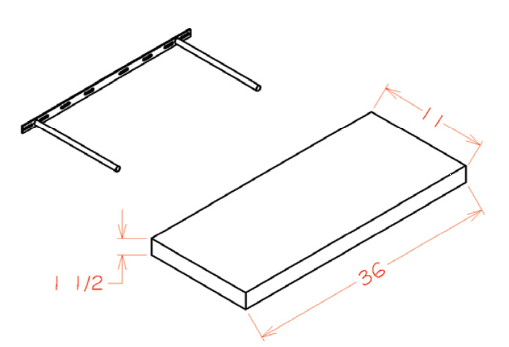 • 36"W x 11"D x 1-1/2"H