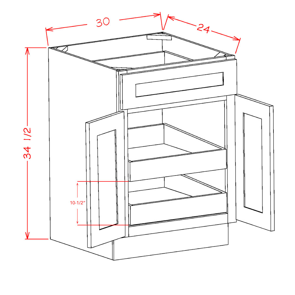 B30S2RS: Double Door Single Drawer Two Rollout Shelf Base Cabinet