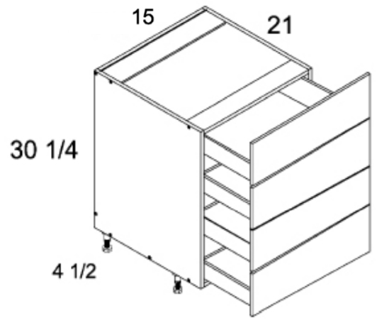 4VDB15: Four Drawer Vanity Base: Palermo Gloss White Kitchen Cabinets