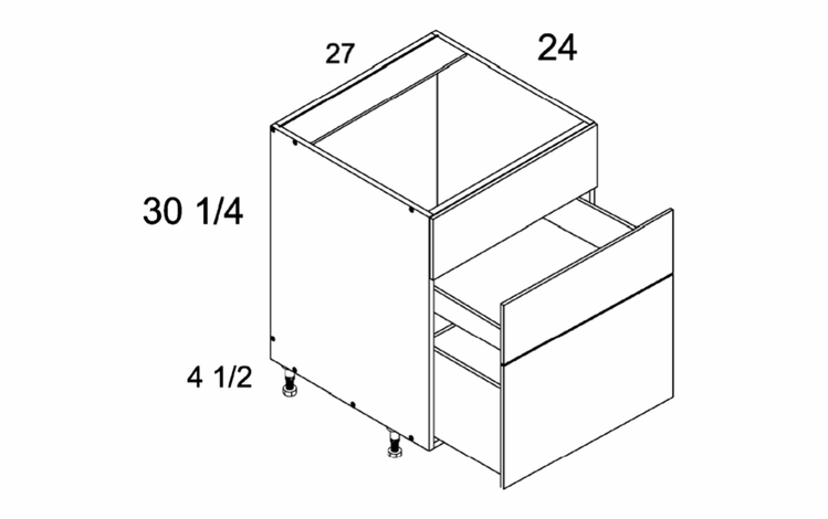 RB3DB27: Two Drawer With False Front Range Base: Palermo Gloss White Kitchen Cabinets