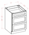 USCD Shaker White 3DB21: Three Drawer Base Cabinet: RTA Kitchen Cabinet