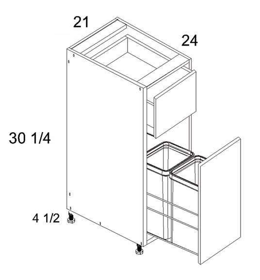 Torino Dark Wood B21TCPO: Base Cabinet With Double Trashcan: RTA Kitchen Cabinets