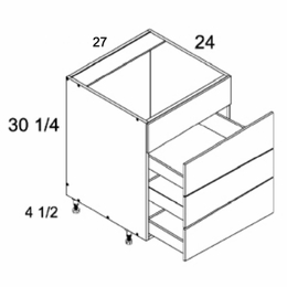 RB4DB27: Three Drawer Range Base with False Front: Torino Dark Wood Kitchen Cabinets