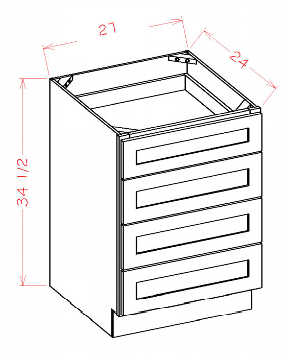4DB27: Four Drawer Base: Torino Grey Wood Kitchen Cabinets