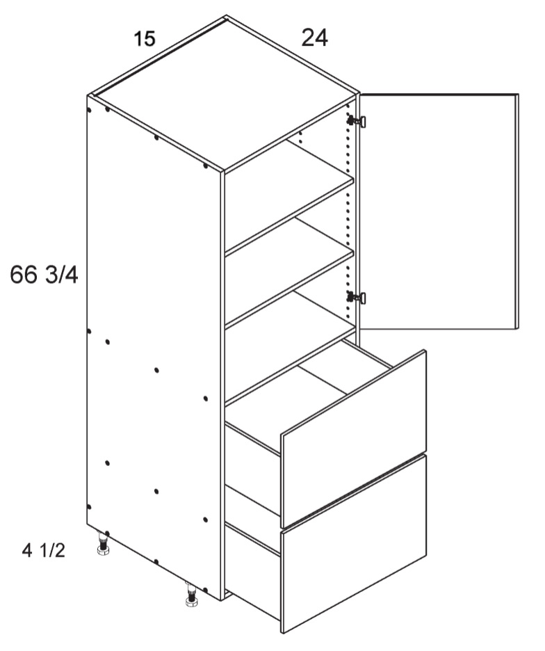 T2DB1572: Tall One Door Two Drawer Utility: Torino White Pine Kitchen Cabinets