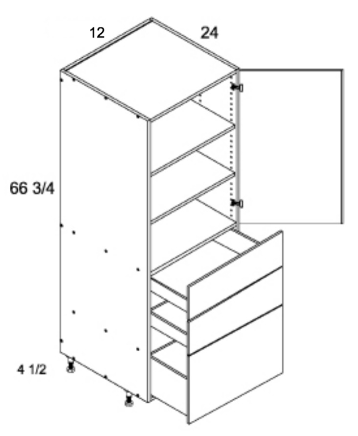 Verona Pure Blanc T3DB1272: Tall One Door Three Drawer Utility: RTA Kitchen Cabinets