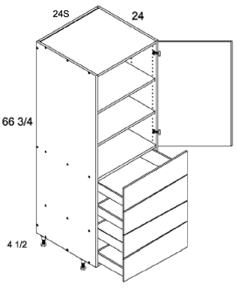 Verona Pure Blanc T4DB2472S: Tall One Door Four Drawer Utility: RTA Kitchen Cabinets