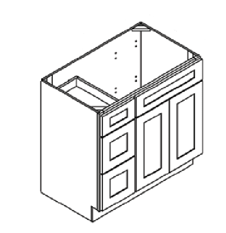 V3021DLVanity Combination Cabinet, 30"W X 34 1/2"H X 21"D- Vanity Combo, 2 Doors - 3 Drawers Left